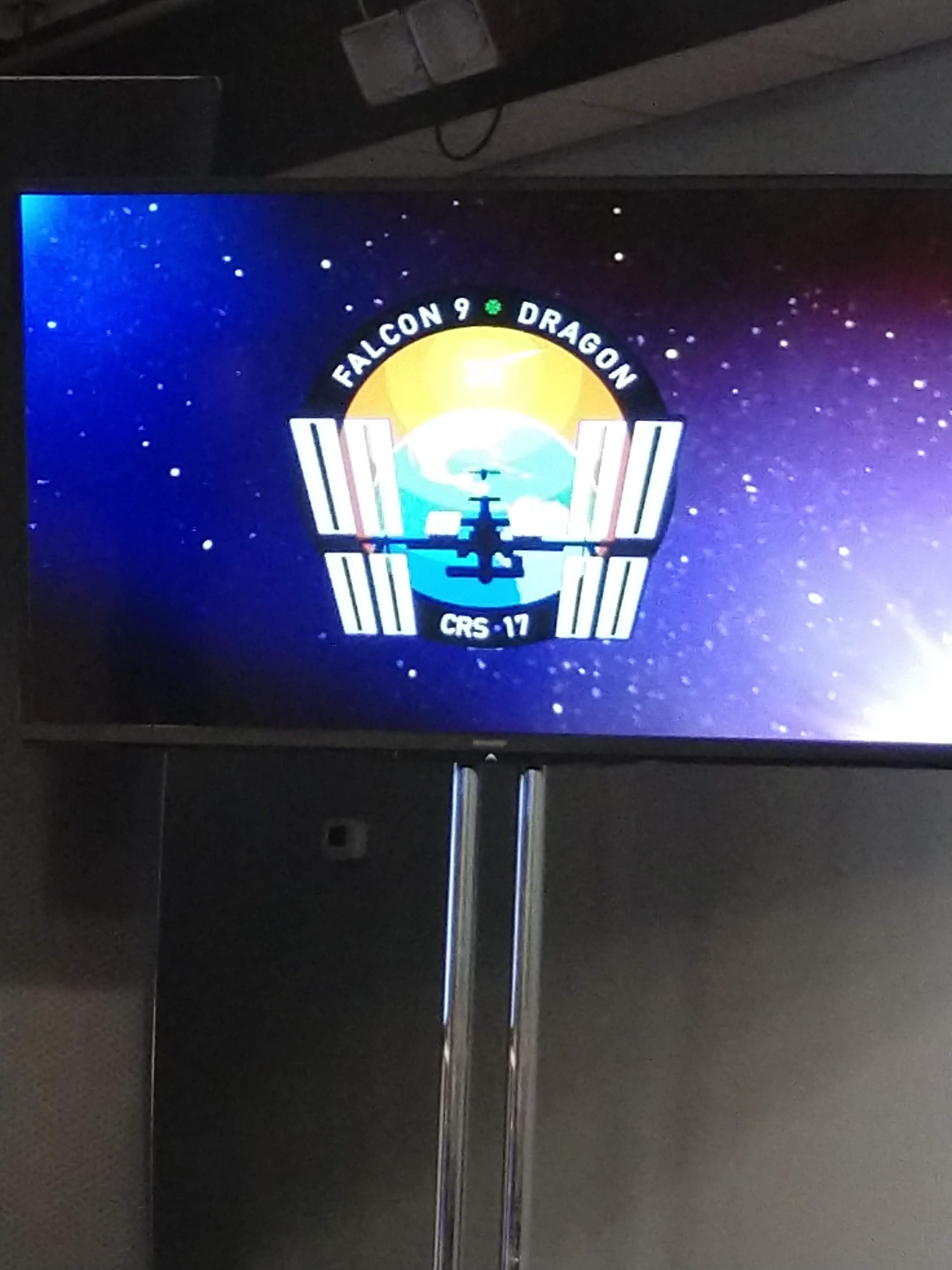 After arriving onsite, we were taken into a media building for the “What’s On Board” mission briefing for SpaceX CRS-17. This mission briefing is televised on NASA TV.  Our #NASASocial group were the media members of the audience.