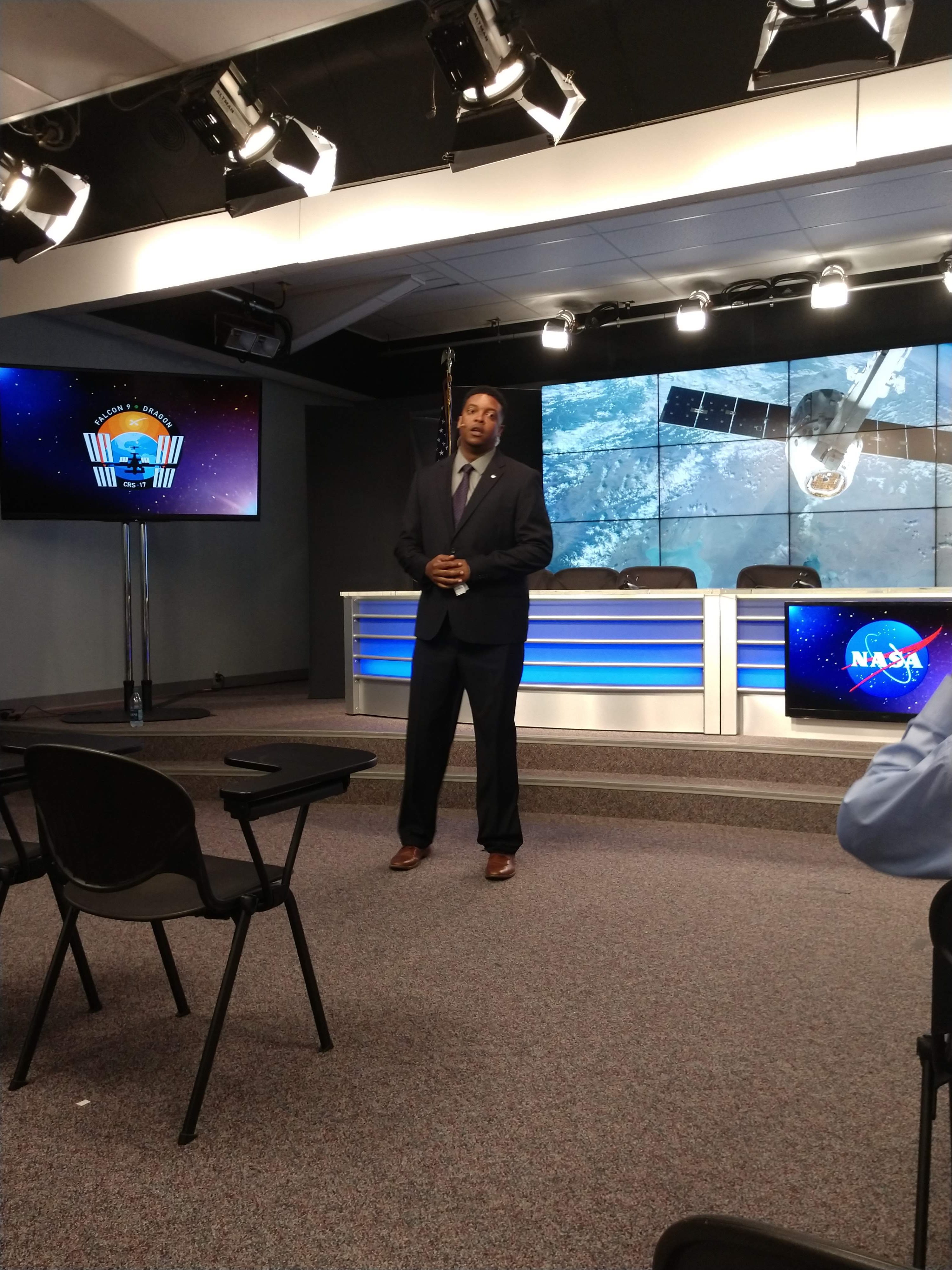 We were given a short overview of all the experiments and science going up on this mission prior to the televised briefing.  Our host was broadcaster Derrick Matthews and he moderated the mission briefing.
